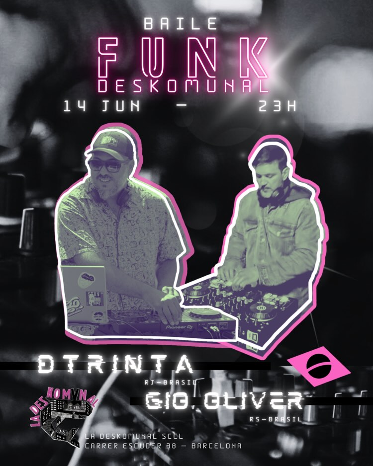 Aquest dissabte 14.06 des de les 23.00 fins a les 3 de la matinada tindrem el primer pancadão Funk BR de Deskomunal amb dos DJs convidats: DTrinta + Gio Oliver.