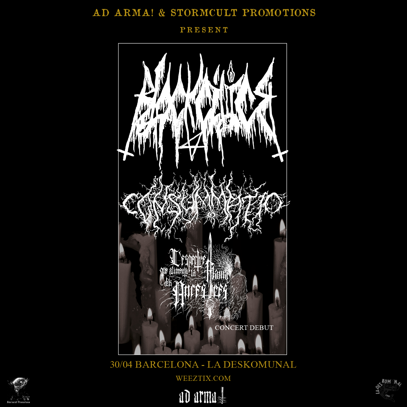 Ho faran acompanyats per Consummatio, en què serà el seu primer concert a Barcelona, i per L’Espectre que Alimenta la Flama dels Ancestres, que faran el seu debut en directe!