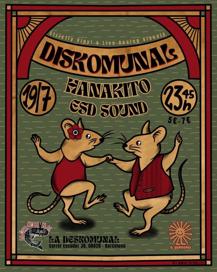 A la cabina tindrem a ESD SOUND (Elsundance), DJ italià resident a Barcelona i col·leccionista de vinils, conegut per les seves sessions electròniques de italo-disco, house i funk que traspassa fronteres i posa la pista a mil.