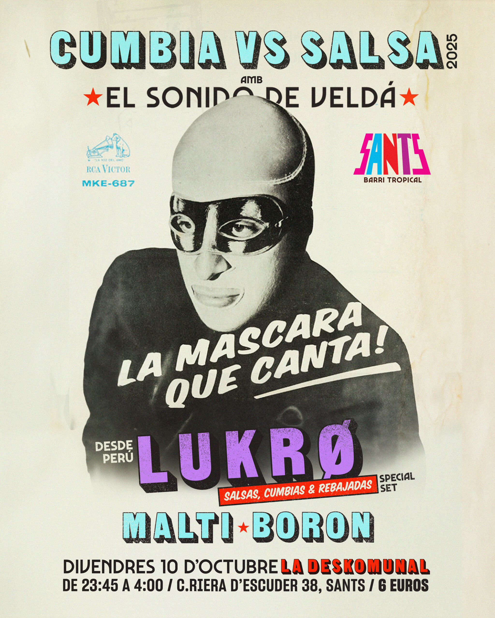 No sabem qui s’amaga darrere d’aquesta màscara, però sí que sabem que ve del Perú, ha viscut a Mèxic i arriba carregat de “puros cañonazos bailables” a l’estil més sonidero.
