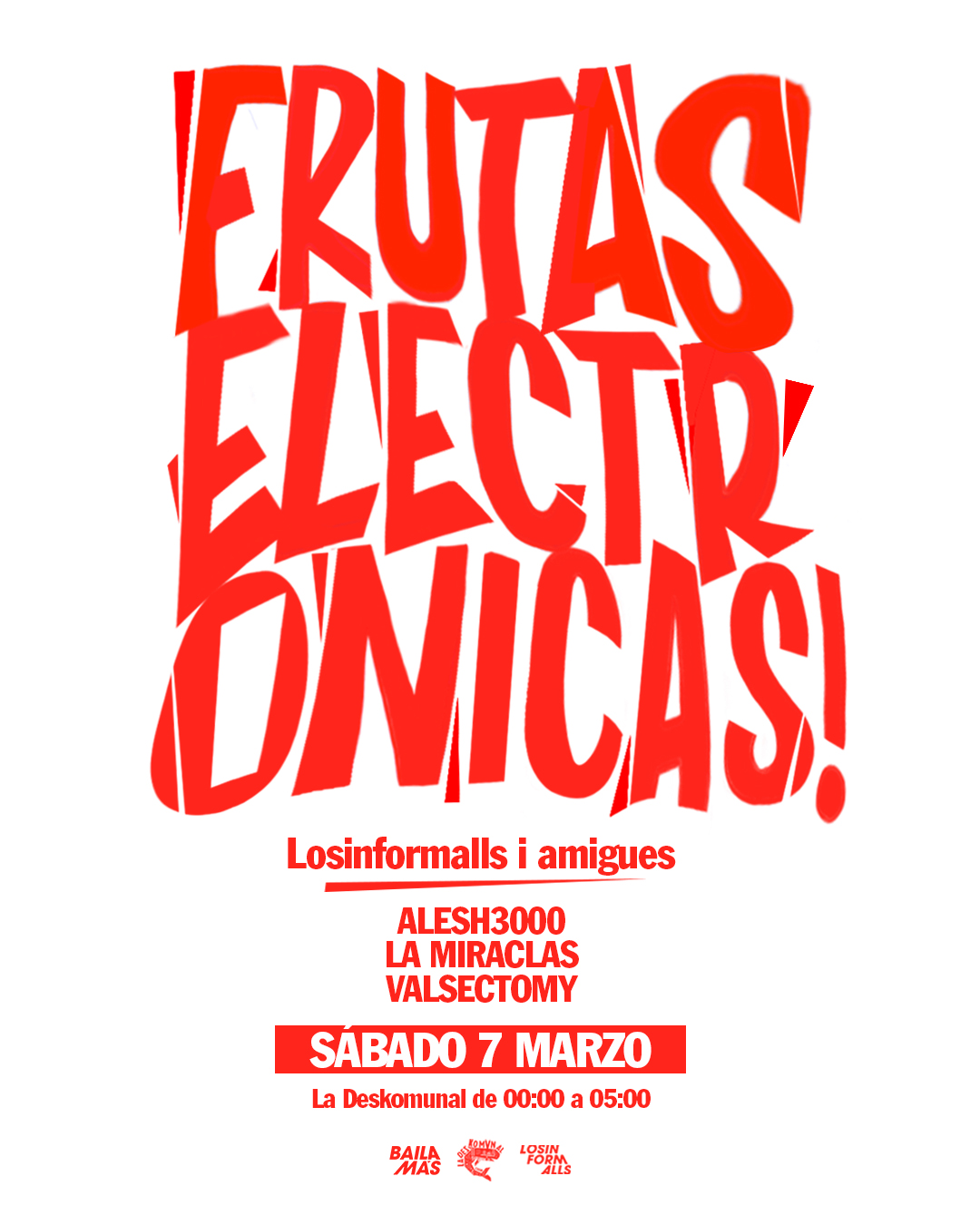 Losinformalls tornen amb la festa més bailonga de la ciutat, aquesta vegada lliurant els comandaments a ALESH3000, VALSECTOMY i LA MIRACLAS el proper dissabte 7 de març a La Deskomunal.