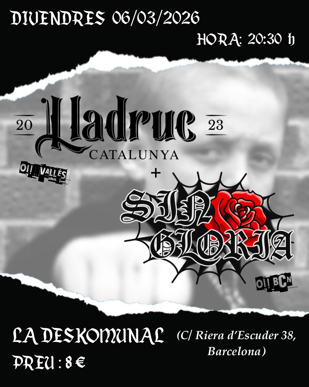 Aquest proper divendres 06 de març, concert de LLADRUC i SIN GLORIA a La Deskomunal.