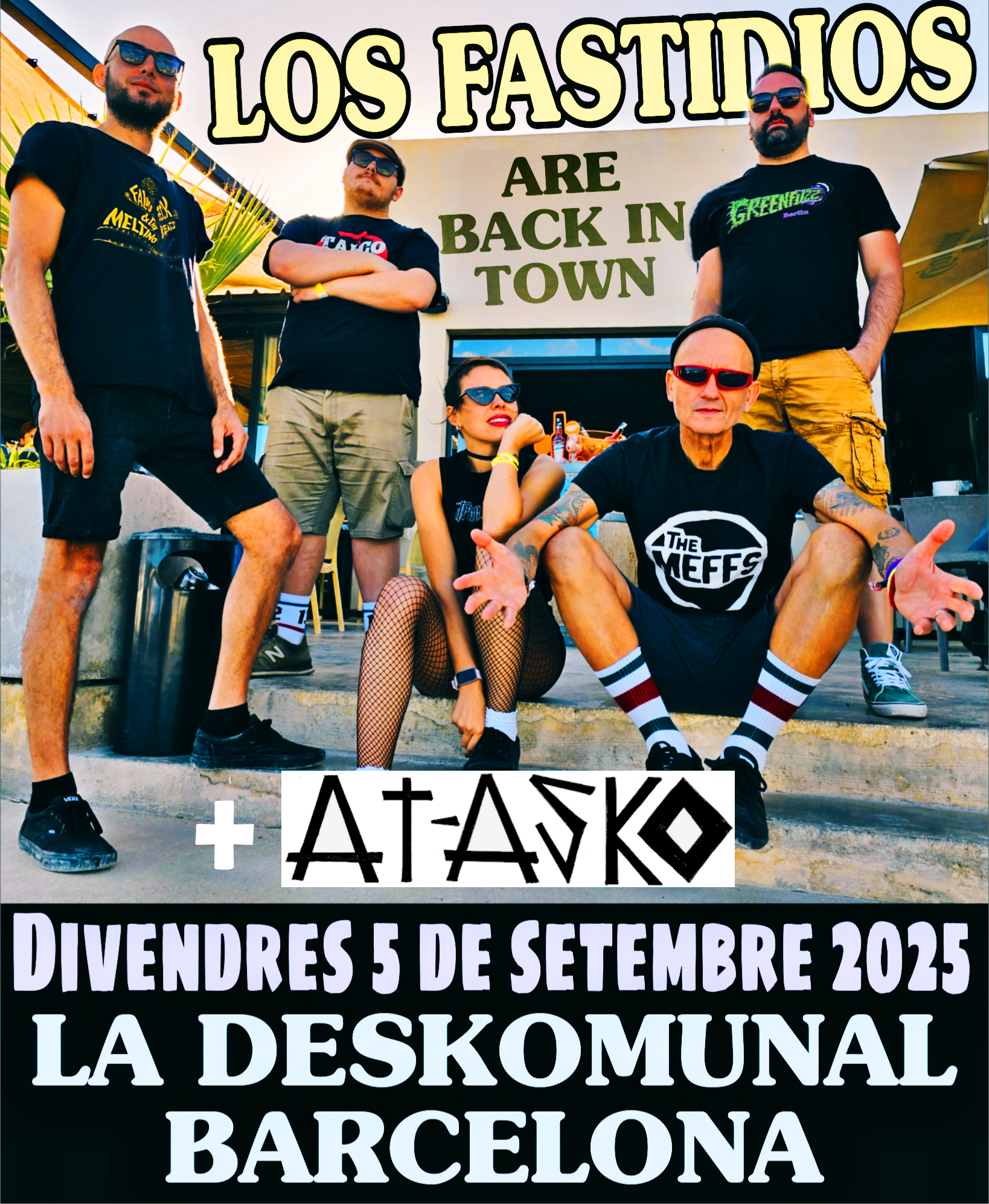 LOS FASTIDIOS….. des de Verona (Itàlia) des de 1991 sempre a la carretera del món, més d’un centenar d’espectacles cada any, tocant des d’Streetpunk fins al so ska de 2Tone, creuant rock’n’roll, brit-pop i reggae primerenc, en nom de la diversió, amb lletres reflexives i socials, que omplen la pista de ball des del primer fins a l’últim segon del concert… la veu principal original d’Enrico s’uneix des de fa uns anys a la dolça i encantadora veu d’Elisa Dixan que va donar a la banda un estat d’ànim nou, millor i encara més atractiu.