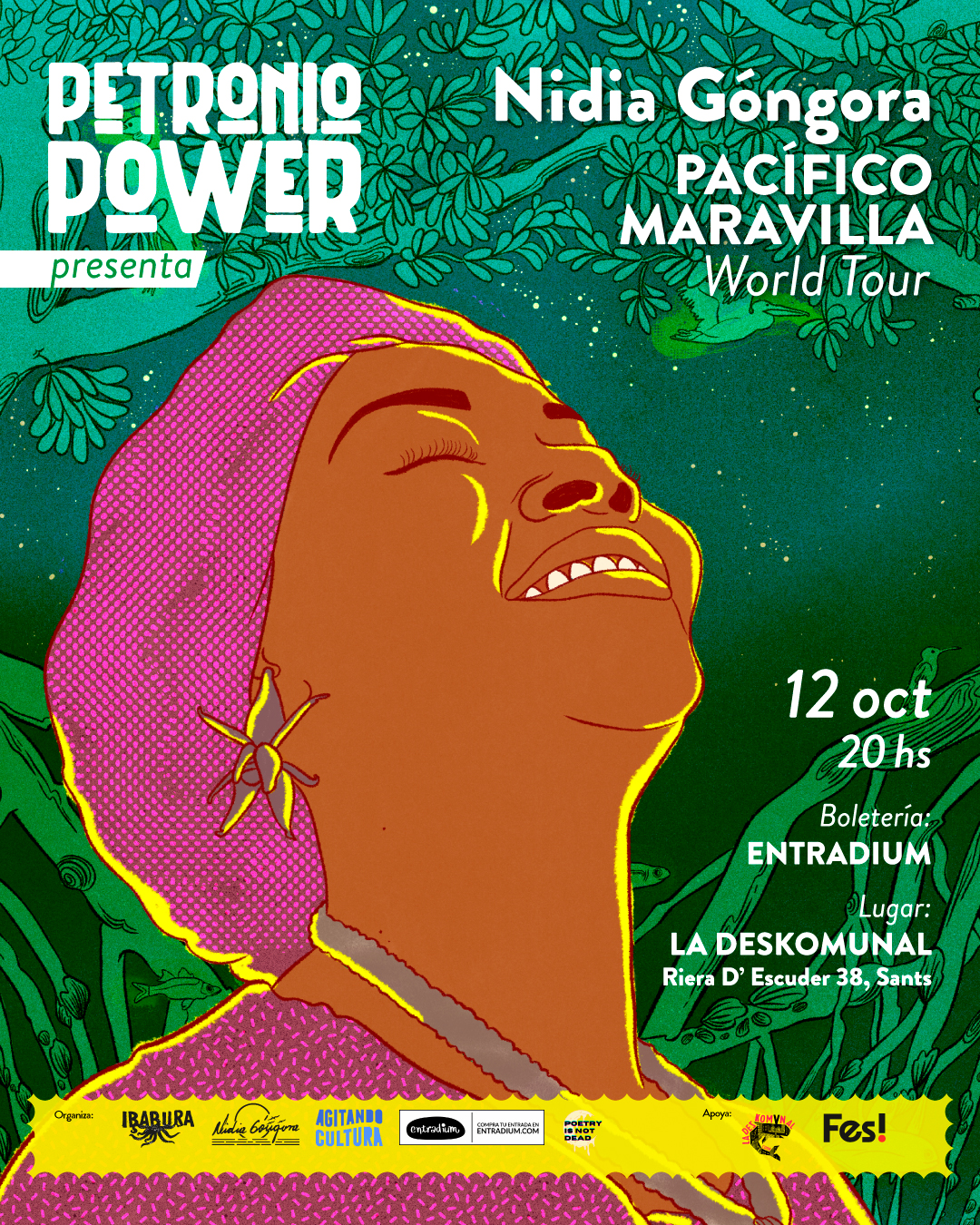 Petronio Power ens presenta a la mestra Nidia Góngora, cantora de Timbiquí, Colòmbia, presenta a Madrid, Barcelona i Donostia la seva primera producció discogràfica com a solista, Pacífico Maravilla. Aquest àlbum és una proposta que fusiona diversos ritmes que ens endinsen al lloc que la va veure néixer i ens connecta amb les guitarrejades nocturnes a la vora del riu Timbiquí, el so dels manglars, la melodia de la marimba, la força dels seus tambors i veus.
