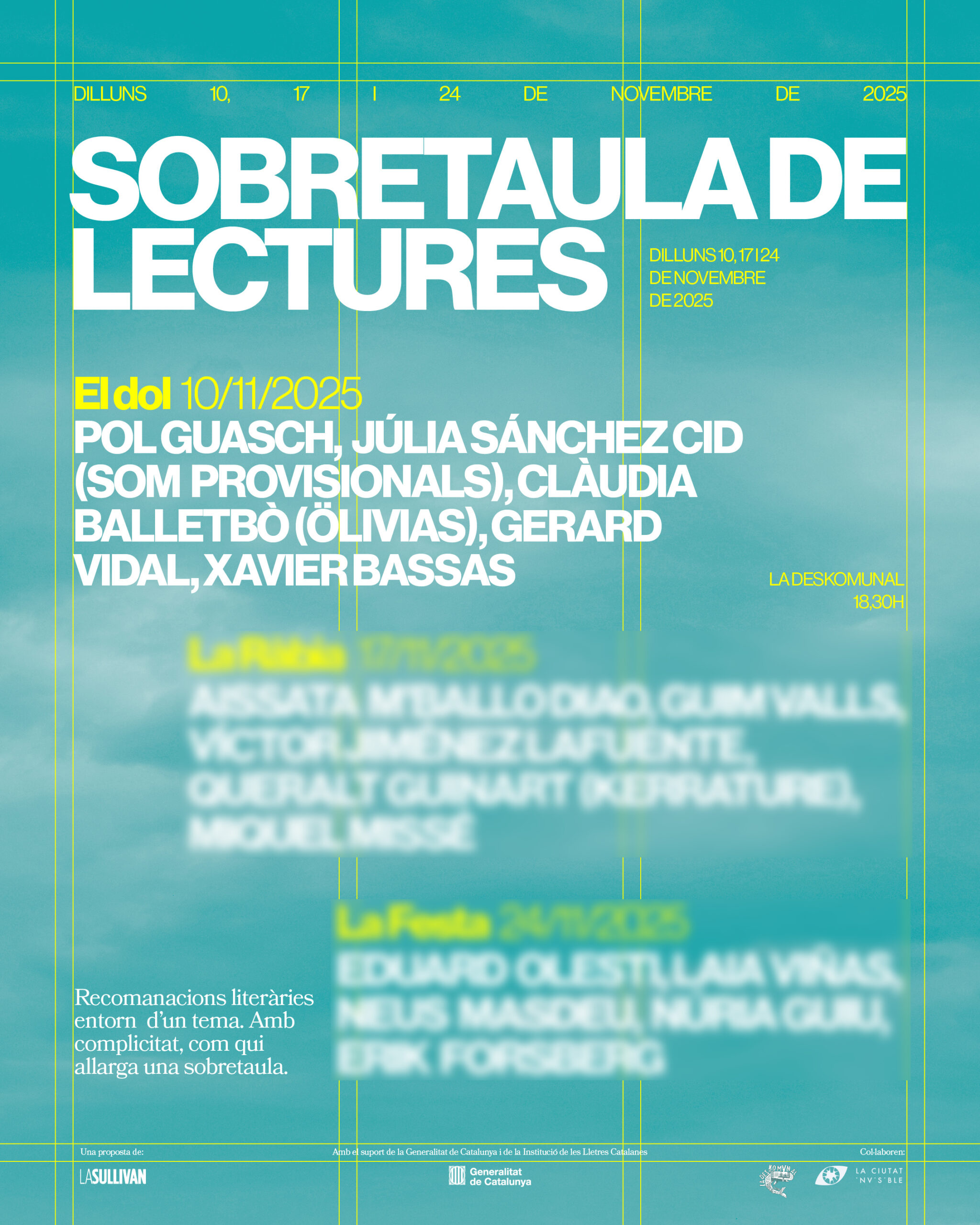 En aquesta trobada, la conversa girarà al voltant de com la literatura pot acompanyar-nos en els processos de dol. Quins llibres ens han ajudat a pensar la mort amb més complexitat? Quins autors han posat paraules al buit o a l’absència? Parlar del dol des dels llibres és també explorar com l’escriptura pot donar sentit, consol o forma al dolor —i com la lectura es converteix, sovint, en una manera d’estar amb els que ja no hi són.